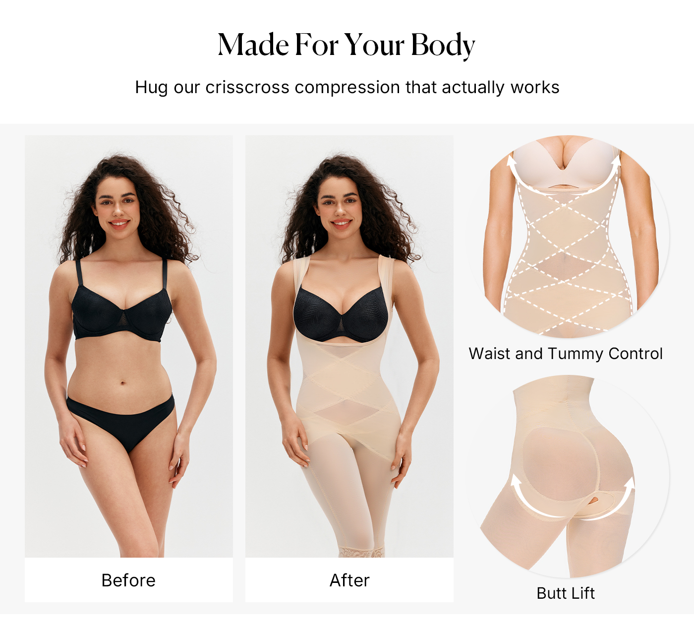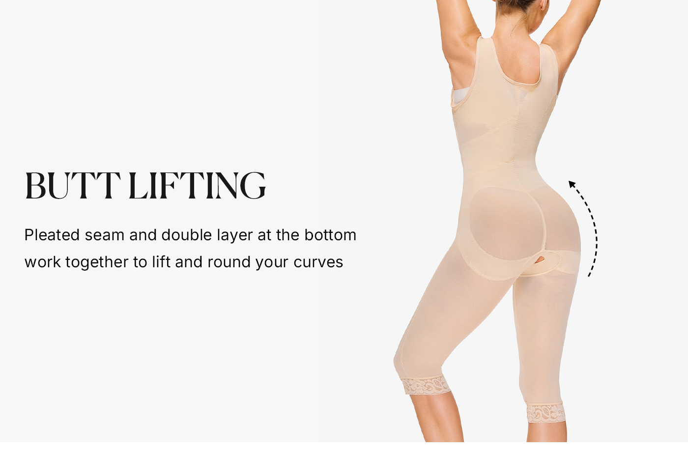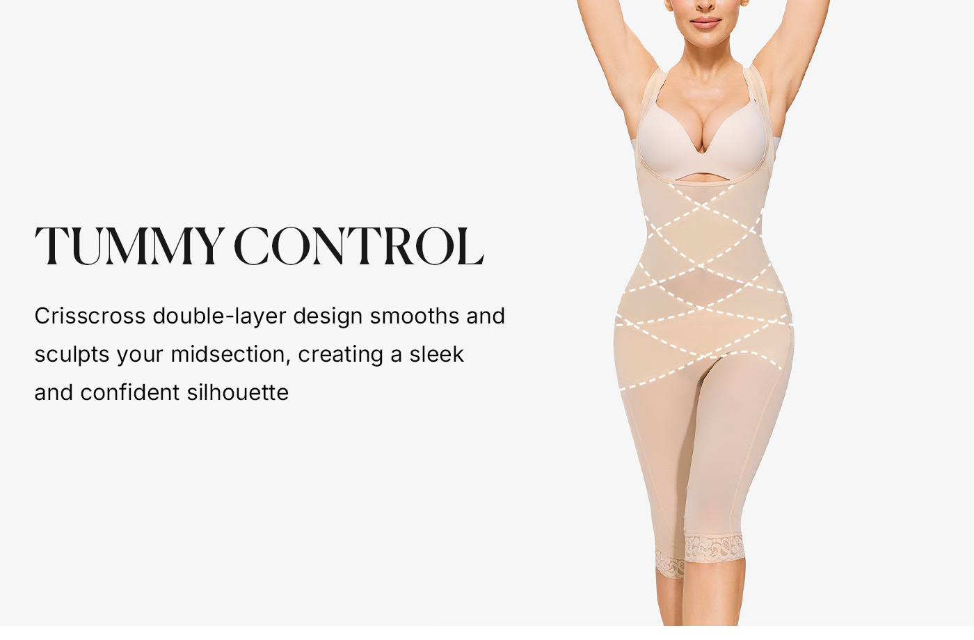 Breathable Invisible Mesh Double Tummy Control Lifting Butt Lifting Body Shaper Open Bust Mid Thigh