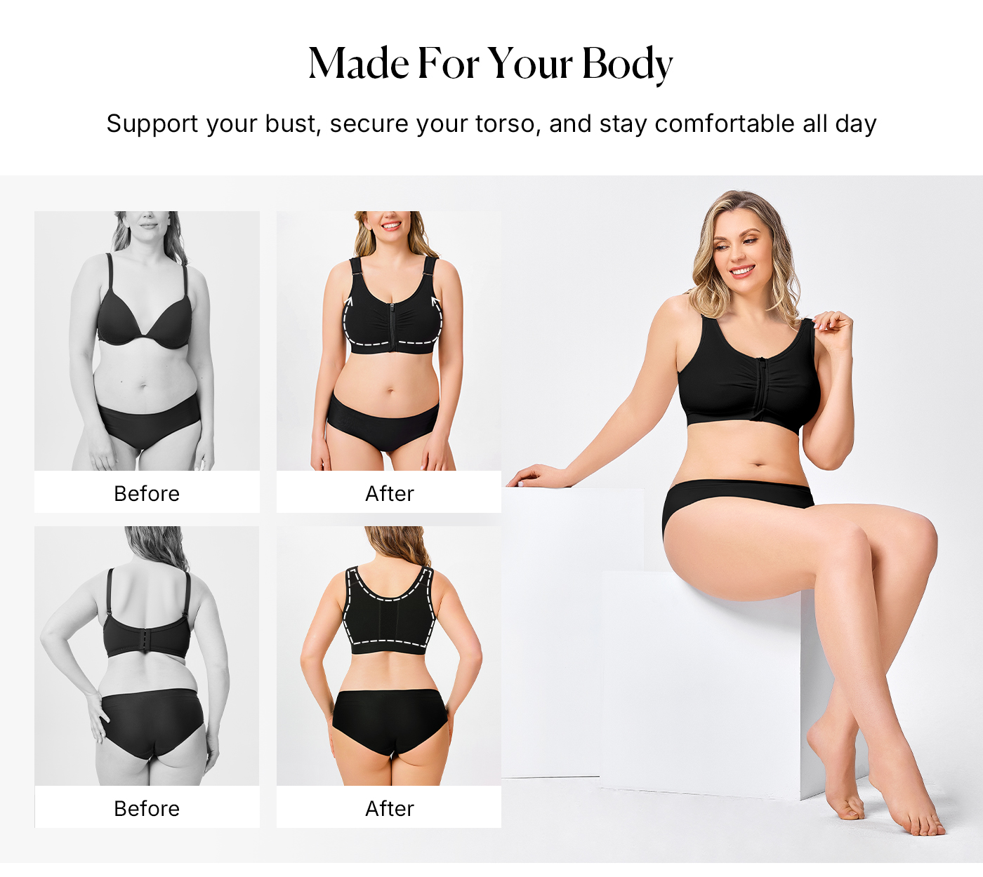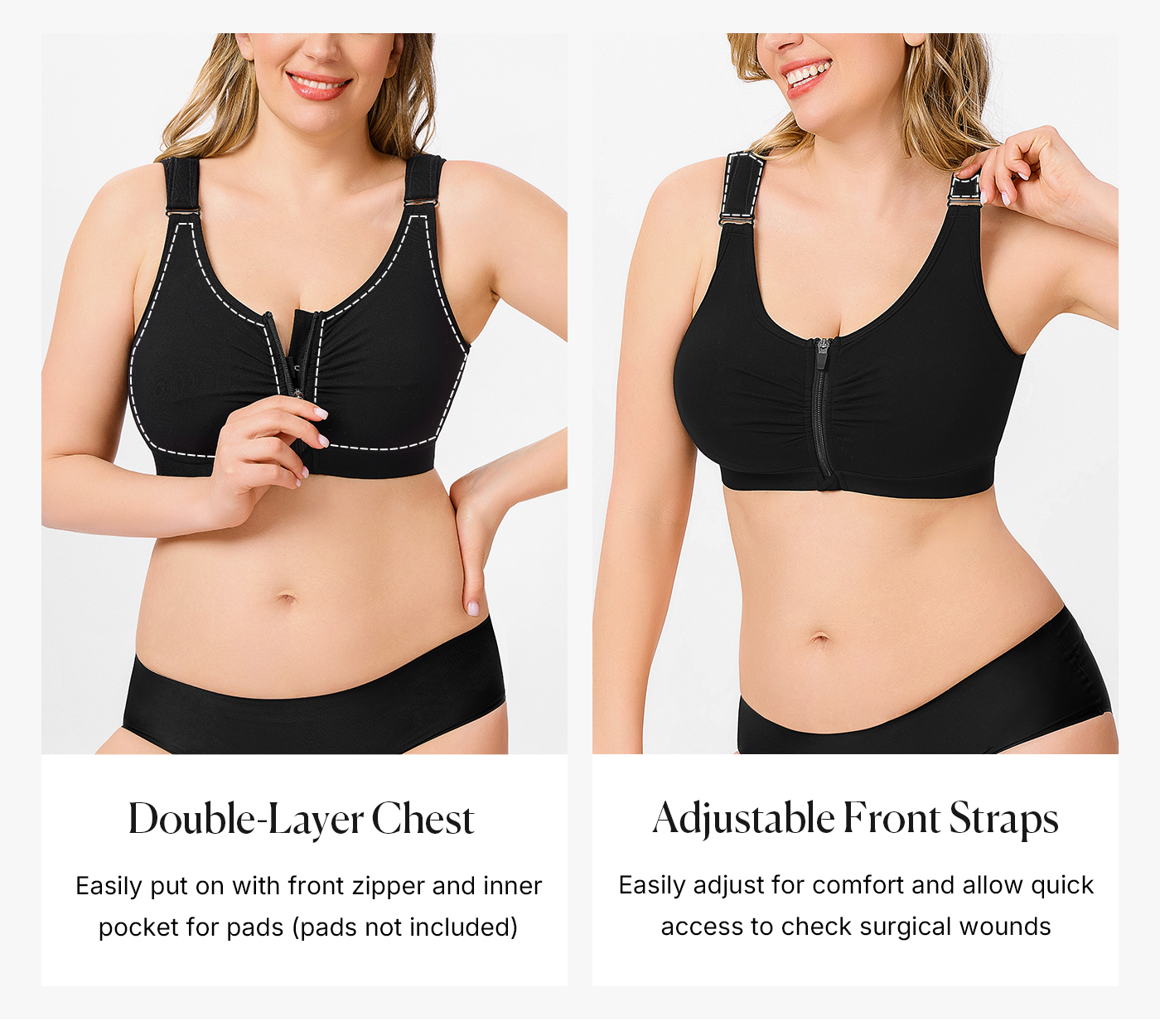 Zip Front Closure Wireless Compression Bra Comfy Everyday Posture Bra