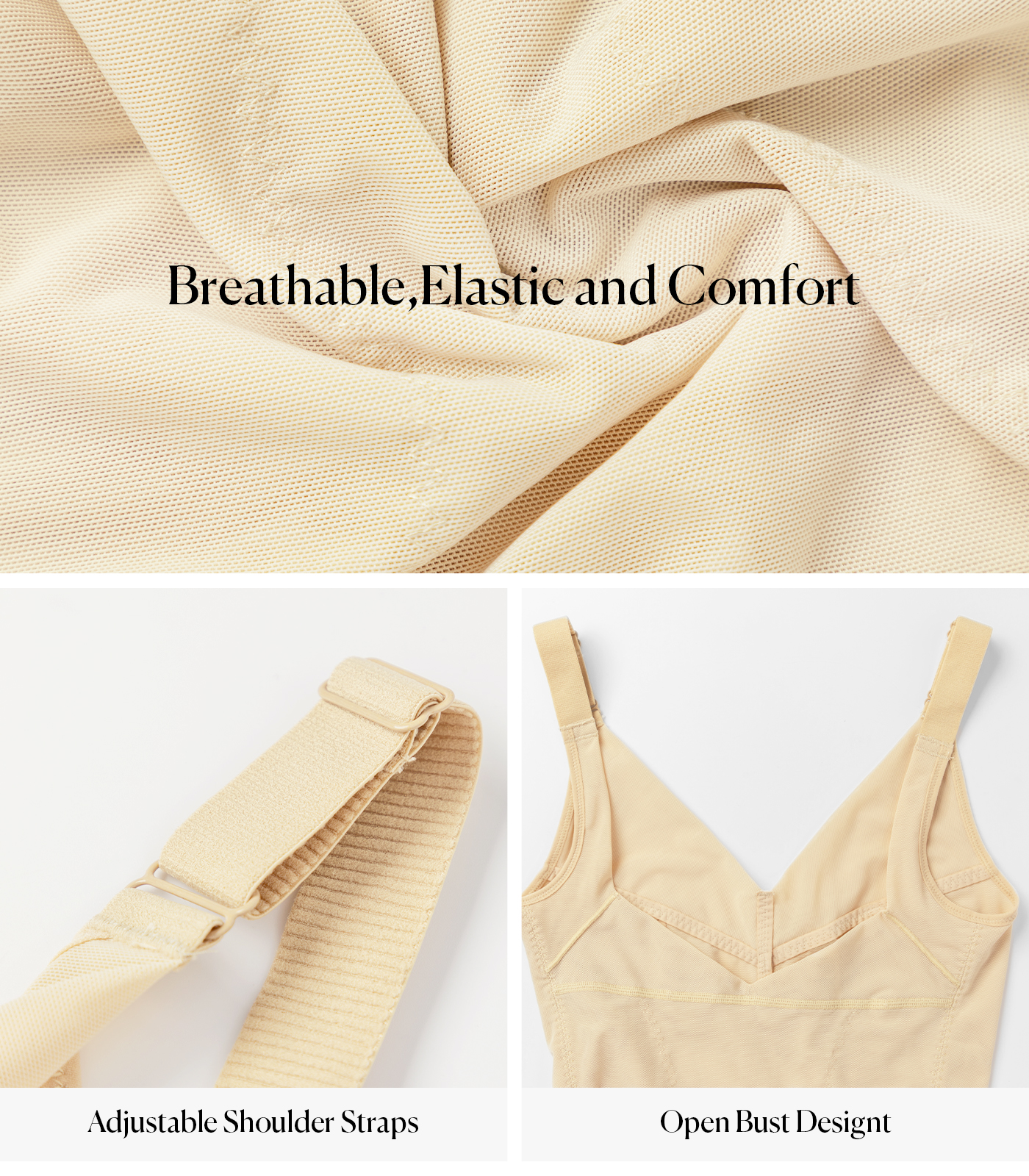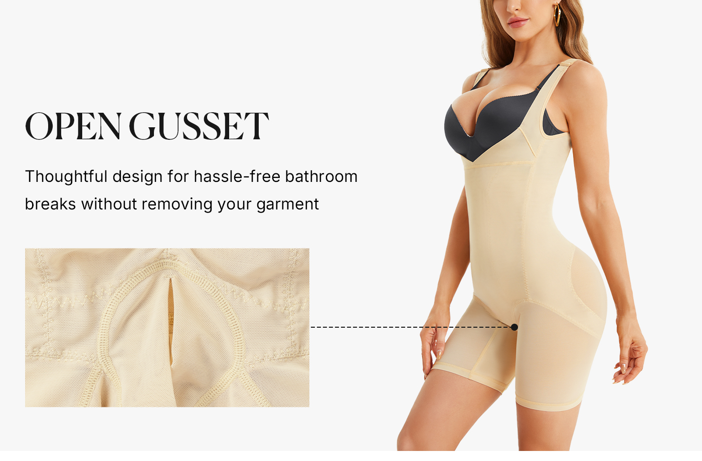Sculpting Breathable Mesh Open Crotch Design Camisole Bodysuit
